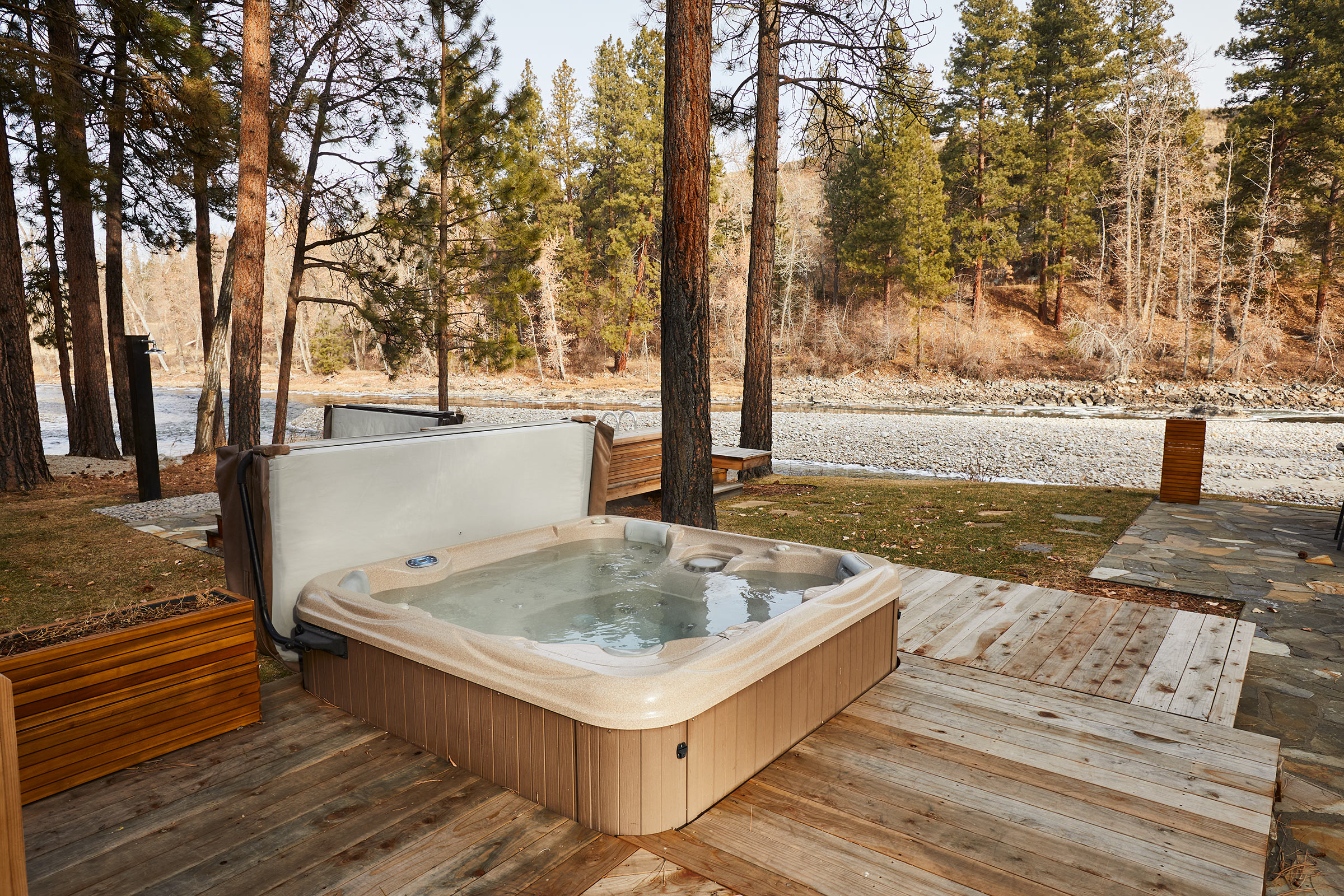 Relax and unwind in our luxurious hot tub, surrounded by nature's tranquility for the ultimate relaxation experience.